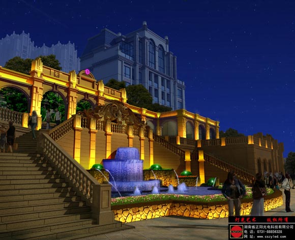 我公司在做燈光藝術(shù)設(shè)計中,采用燈光的特性,以人為本,鑄造一個“皇室貴族”的夜生活空間;重點突出建筑特色,最大限度采用見光不見燈的夜間表現(xiàn)形式,既能創(chuàng)造一個舒適的室外夜空間,又不影響建筑白天的效果,使建筑區(qū)域成為該地區(qū)的富有特色的標(biāo)志性建筑。