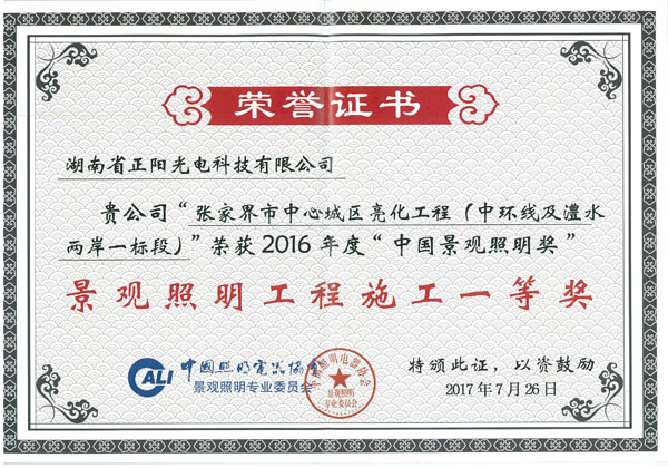 湖南省正陽光電科技有限公司是一家從事亮化工程及大型燈光藝術的設計、制作、安裝和維護于一體的專業(yè)化公司。公司資質齊全、管理嚴謹、技術先進、實力雄厚,取得了城市及道路照明工程專業(yè)承包壹級資質、照明工程設計專項甲級資質、國家高新技術企業(yè)、國家“重質量·守誠信”示范企業(yè)。