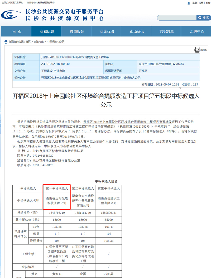 2018年9月7日,湖南省正陽光電科技有限公司成功中標(biāo)開福區(qū)2018年上麻園嶺社區(qū)環(huán)境綜合提質(zhì)改造工程項(xiàng)目第五標(biāo)段。熱烈祝賀湖南省正陽光電科技有限公司成功中標(biāo)開福區(qū)20...