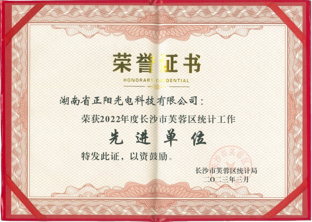 熱烈祝賀正陽(yáng)光電榮獲2022年度長(zhǎng)沙市芙蓉區(qū)統(tǒng)計(jì)工作“先進(jìn)單位”榮譽(yù)稱號(hào)![2023-03-31]