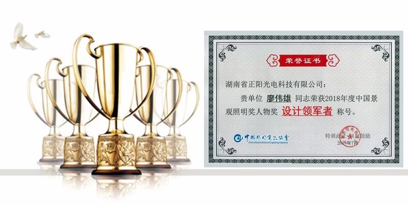 在中國(guó)景觀(guān)照明獎(jiǎng)?lì)C獎(jiǎng)典禮環(huán)節(jié),對(duì)2018年度“中國(guó)景觀(guān)照明獎(jiǎng)”獲獎(jiǎng)個(gè)人及企業(yè)進(jìn)行表彰頒獎(jiǎng),湖南省正陽(yáng)光電科技有限公司董事長(zhǎng)廖偉雄獲得了2018年度中國(guó)景觀(guān)照明獎(jiǎng)人物獎(jiǎng)“設(shè)計(jì)領(lǐng)軍者”稱(chēng)號(hào)。此次獎(jiǎng)項(xiàng)評(píng)選旨在倡導(dǎo)景觀(guān)照明產(chǎn)業(yè)鏈重品質(zhì)、重信譽(yù)、重環(huán)保、重科技創(chuàng)新的理念,引導(dǎo)和促進(jìn)景觀(guān)照明產(chǎn)業(yè)健康發(fā)展。